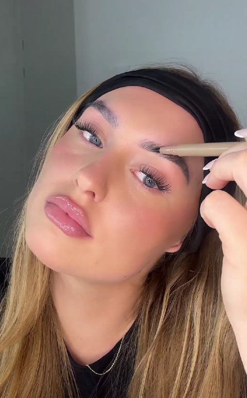 Schud eerst en gebruik de ultrafijne punt om lichte, natuurlijke haartjes te tekenen waar je wenkbrauwen voller mogen lijken.