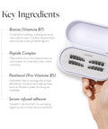 Het Biotin + Peptide + Panthenol complex verzorgt je natuurlijke wimpers terwijl jij ze draagt. De hele week door.
