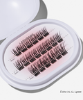 Plaats de cluster onder je natuurlijke wimpers, zo dicht mogelijk tegen je wimperrand.5–10 seconden zacht aandrukken en klaar. Mix lengtes voor een natuurlijke opbouw of stack ze voor extra volume.